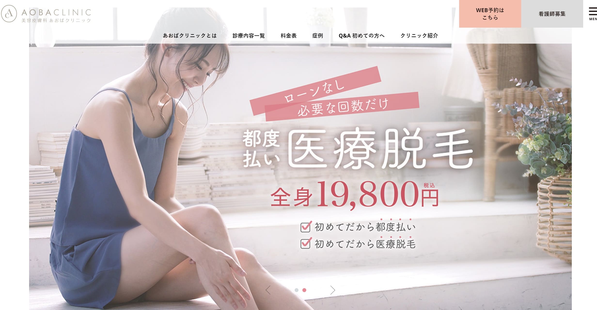 あおばクリニックは、分かりやすい都度払いです。一度にたくさんのお金を払ったり、ローンを組む必要はありません。施術を受けるごとに、施術料金を払うスタイルです。そのため、ローンを組みたくない・高額な料金を払うことに抵抗があるなどというかたにおすすめです。