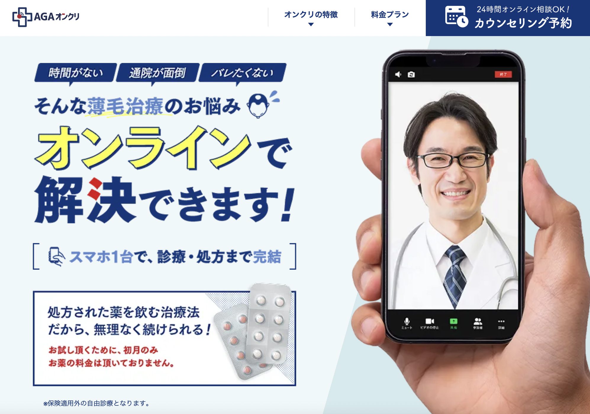オンラインに特化 実績が豊富 診察料無料 |