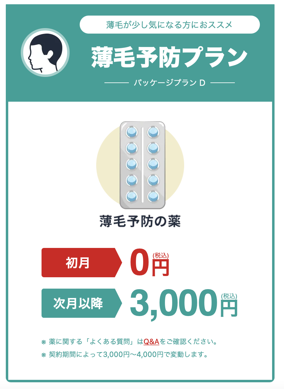 | 公式サイト | AGA治療薬 (予防) 料金 |