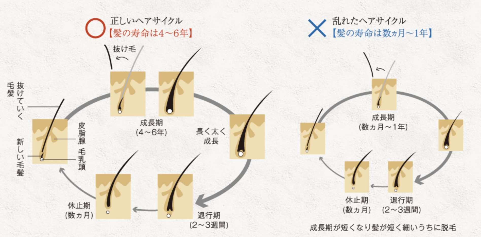 治療薬はヘアサイクルの乱れを改善してくれますが、ヘアサイクルを正常化するまでには時間を要します。