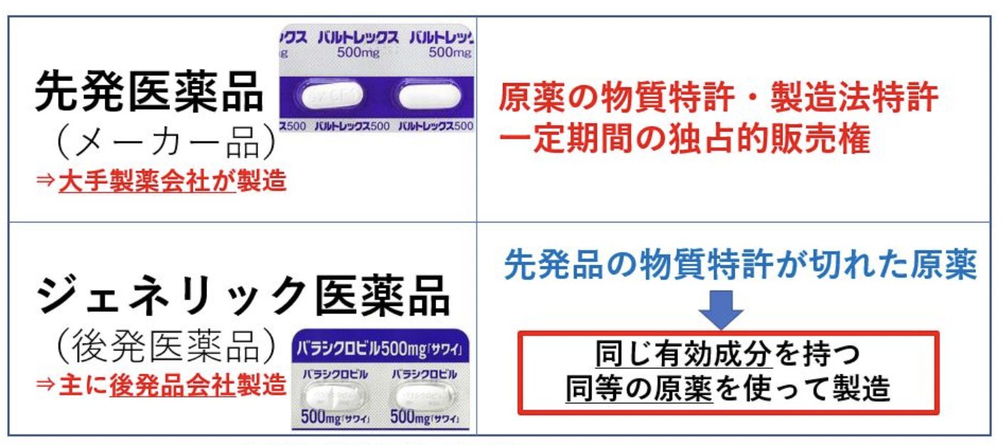 ジェネリック医薬品とは先発薬と同じ有効成分や製法で作られる後発医薬品で、開発費がかからない分安く購入できるのが魅力です。