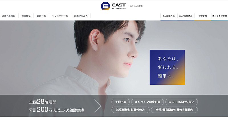 イースト駅前クリニックは治療実績が豊富で、累計150万人以上もの実績があります。治療実績を元に、一人ひとりに合った薬剤を処方しているので、高い効果が期待できます。