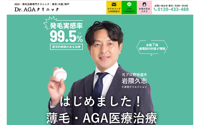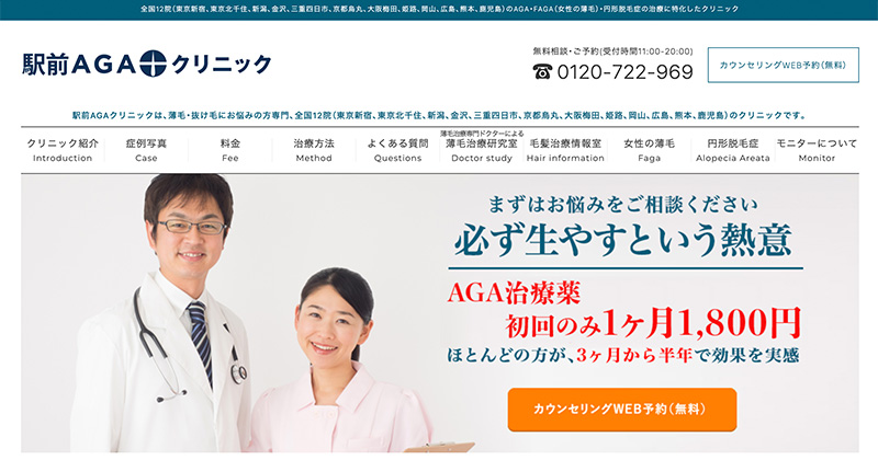 駅前AGAクリニックは大阪を含め全国に12院展開するクリニックです。豊富な症例実績を持っており、ホームページでは多数の症例を見ることができます。AGA治療の経過や効果は個人差がありますが、症例を見ることで治療を受ける前でもイメージがしやすくなります。