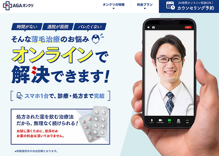 AGAオンラインクリニックはオンライン完結型のクリニックです。24時間いつでもオンラインで予約だけでなく、カウンセリングを受けることができます。お仕事でなかなか時間が取れない人でも、早朝や深夜にカウンセリングができるのは嬉しいですよね。