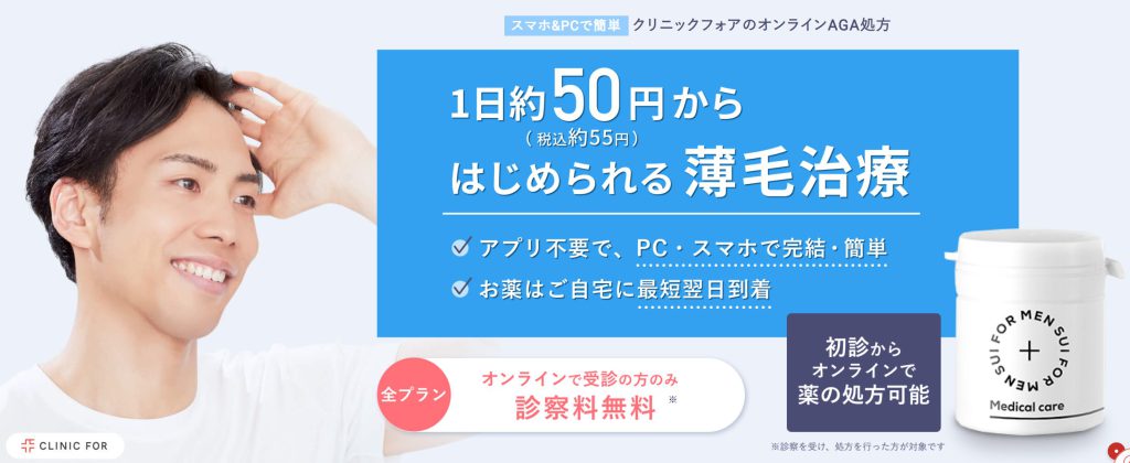 また初回限定価格が用意されているのも嬉しいポイントで、フィナステリドは1,600円(通常6,600円)、プロペシアは4,620円(通常7,700円)で受けられます。