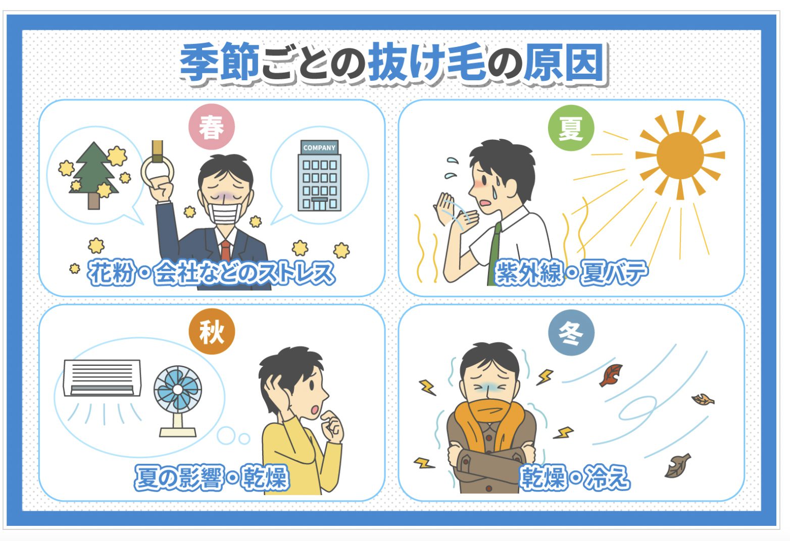 そもそも髪の毛は治療とは関係なく抜け落ちるほか、季節や生活習慣などにより増えたように感じるケースもあります。