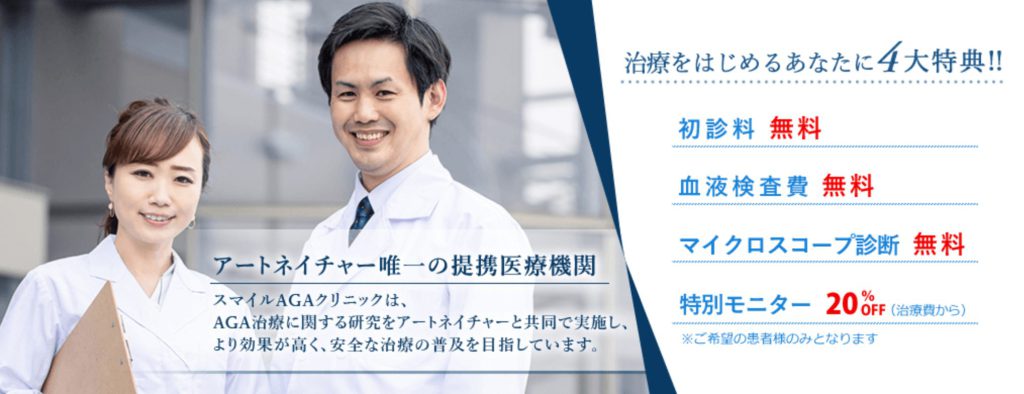 スマイルAGAクリニックは医学的根拠に基づいた薄毛治療にこだわっており、初診・カウンセリング・血液検査料は無料です。