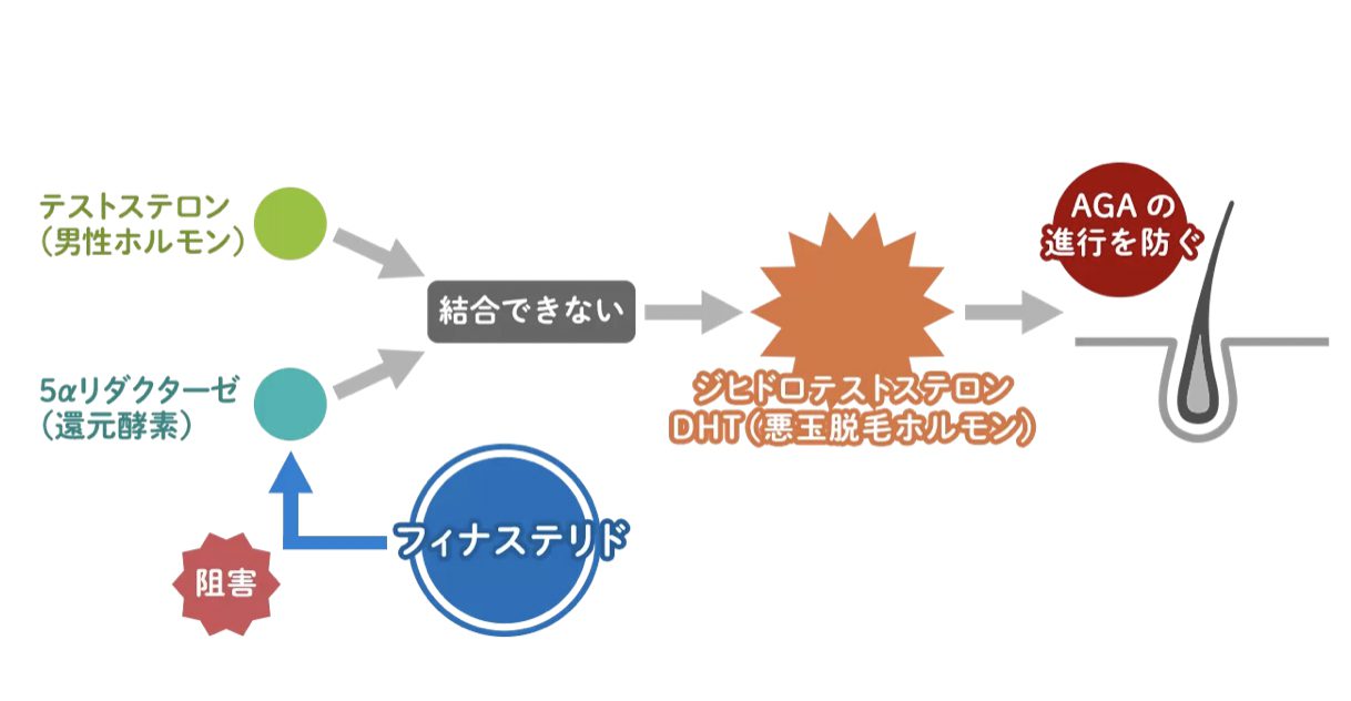 阻止することでAGAの原因であるジヒドロテストステロンが生成されなくなります。