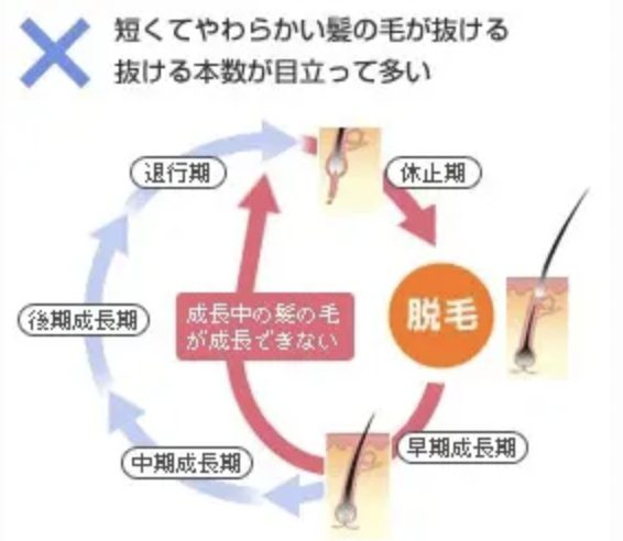 血液は栄養を届けるだけではなく、老廃物も運ぶ役割があります。どちらか一方でも正しく行われないと、ヘアサイクルが乱れ抜け毛や薄毛の原因になります。