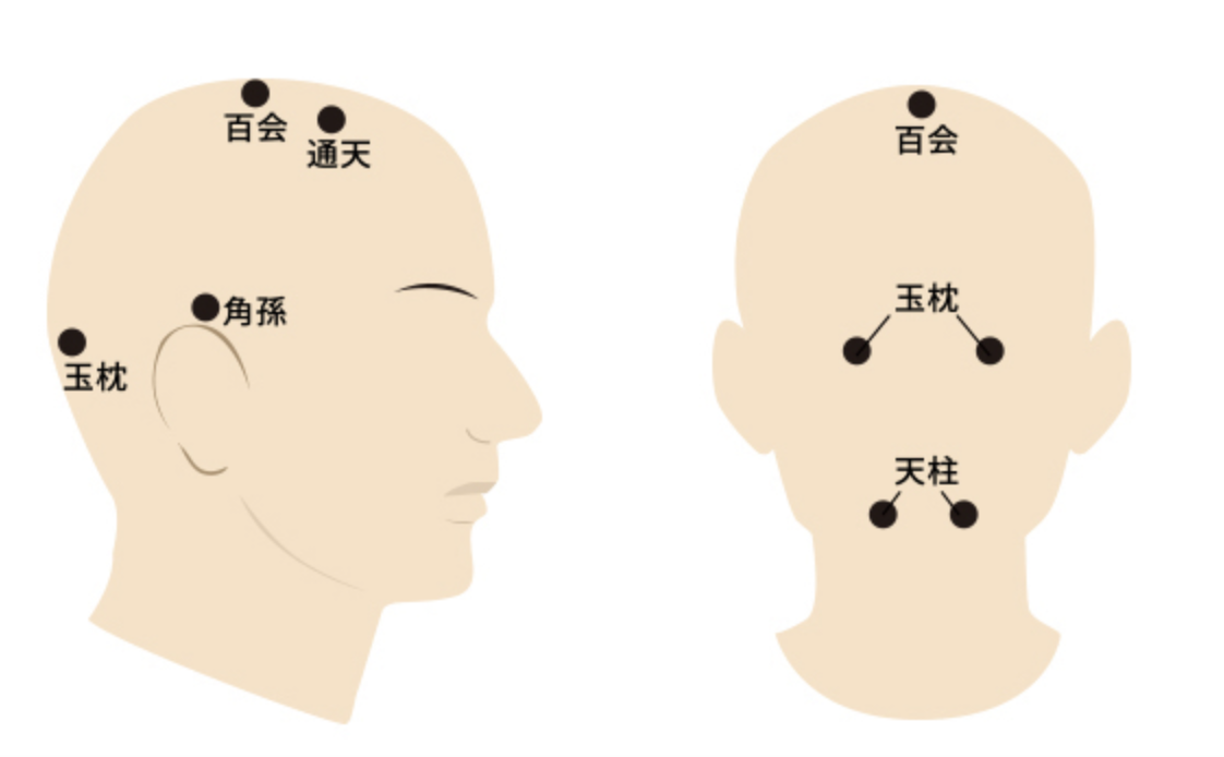 頭部には4つのツボがあり、それぞれのツボを3~5秒程度を目安に押しましょう。